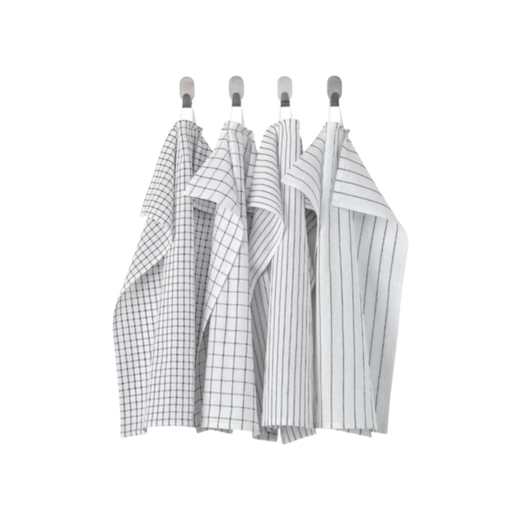 Det klassiske stribede design i hvid og sort passer perfekt ind i både moderne og traditionelle køkkener. Det enkle look gør dem nemme at kombinere med andre køkkentekstiler. Viskestykkerne kan vaskes ved 60 grader og tåler tørretumbling, hvilket gør dem nemme at holde rene og friske - selv ved hyppig brug.