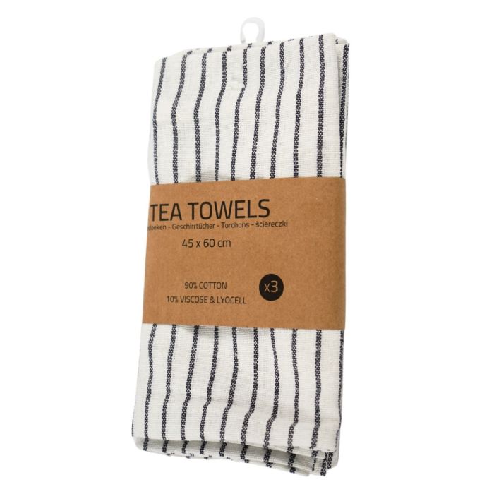 Opgrader dit køkken med disse klassiske viskestykker i 3-pak. De hvide viskestykker med klassiske smalle sorte striber kombinerer et tidløst design med høj funktionalitet, så du får både æstetik og samtidig med du klare hverdagens pligter.